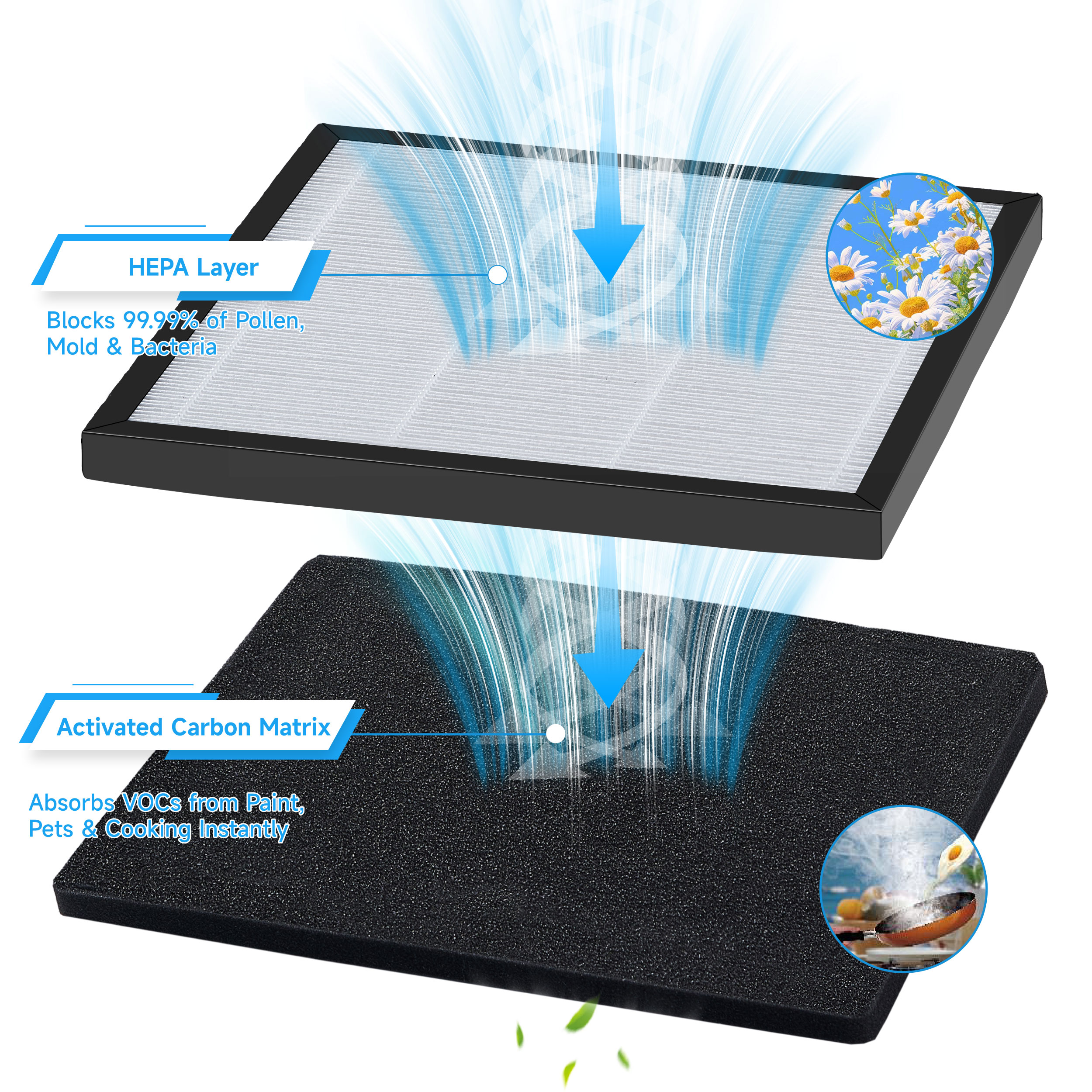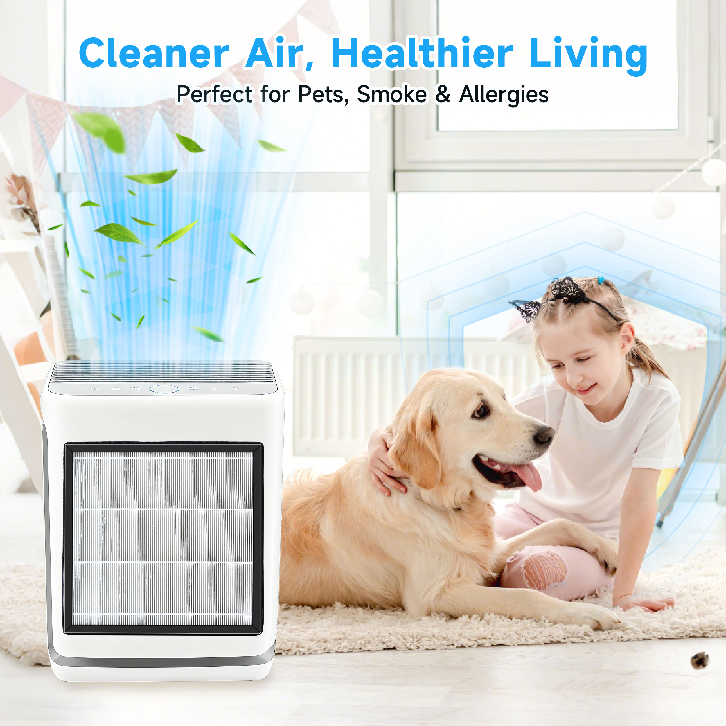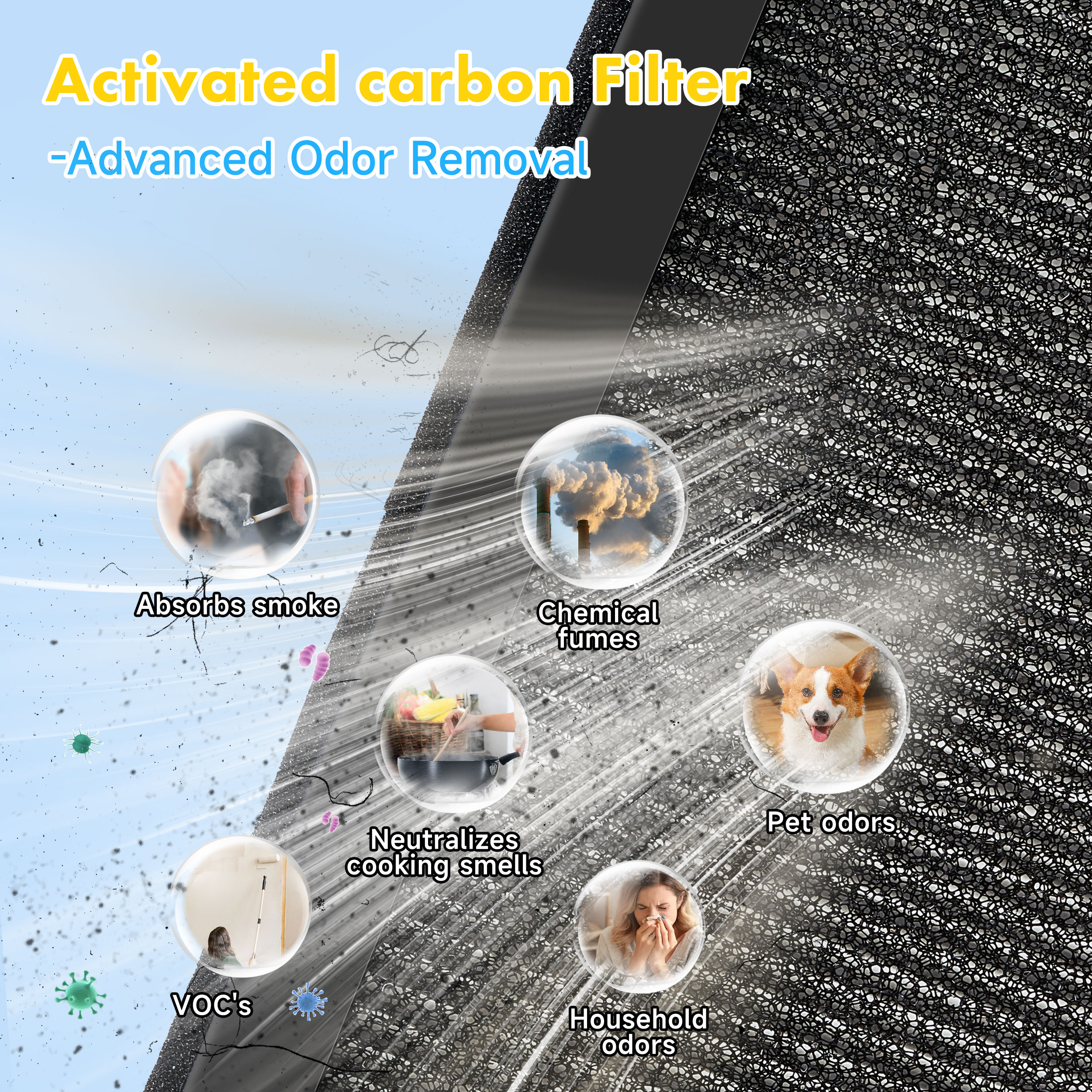 - Removes Unpleasant Odors – Packed with high-density activated carbon, this air filter efficiently neutralizes pet odors, cooking fumes, tobacco smoke, and other unwanted smells, making it ideal for homes with pets or allergy sufferer